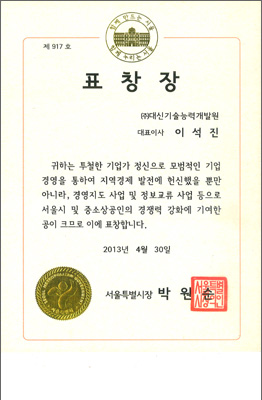2005³â ÃÖ¿ì¼ö ÈÆ·Ã±â°üÀ¸·Î ¼±Á¤ µÇ¾î ¹Î°£ Á÷¾÷ÈÆ·Ã±â°ü ÃÖÃÊ·Î ´ëÅë·ÉǥâÀ» ¼ö»óÇÏ¿´½À´Ï´Ù.